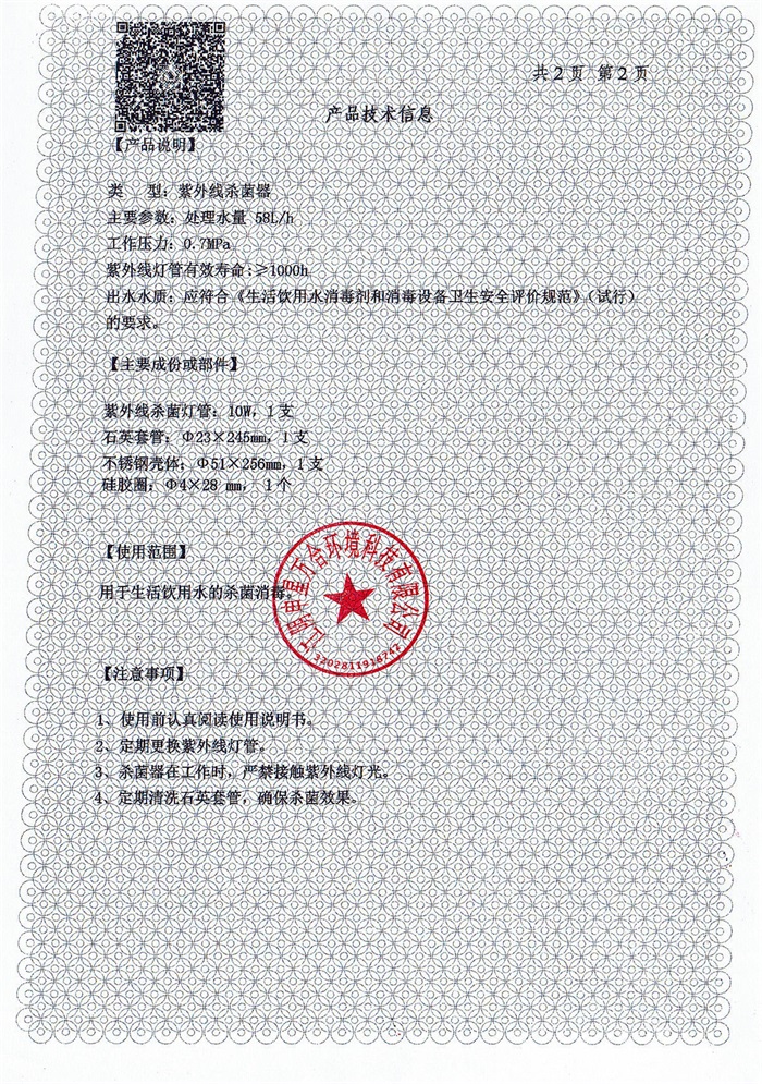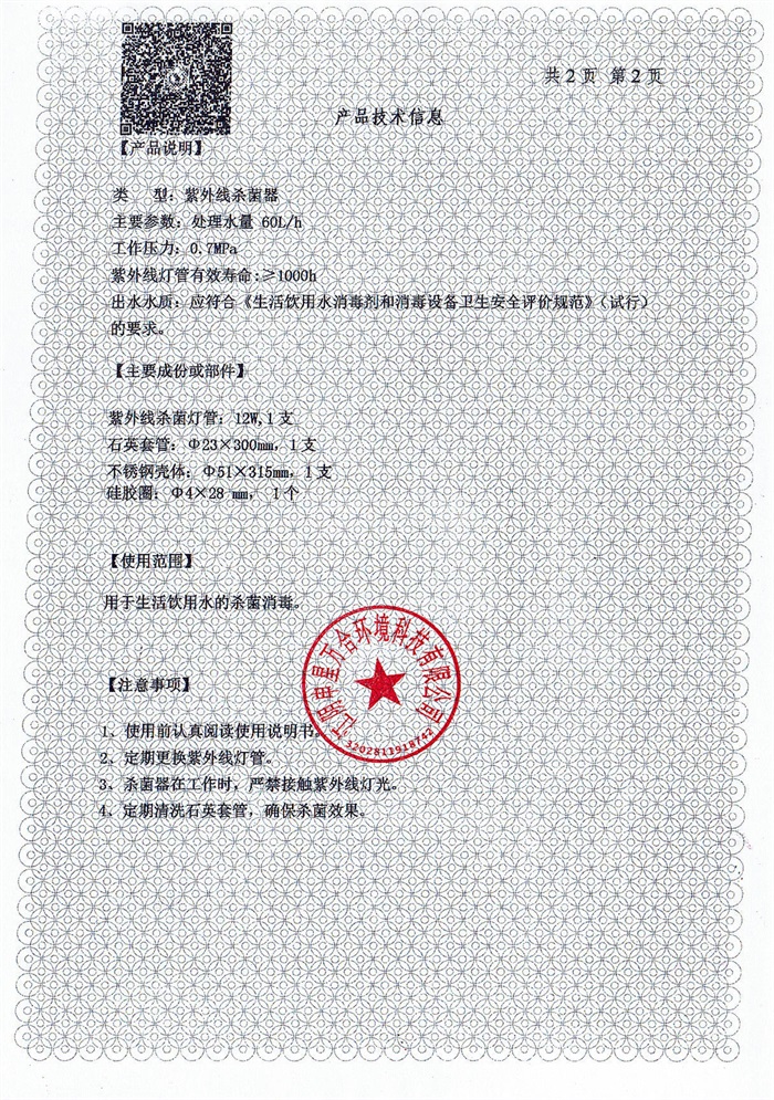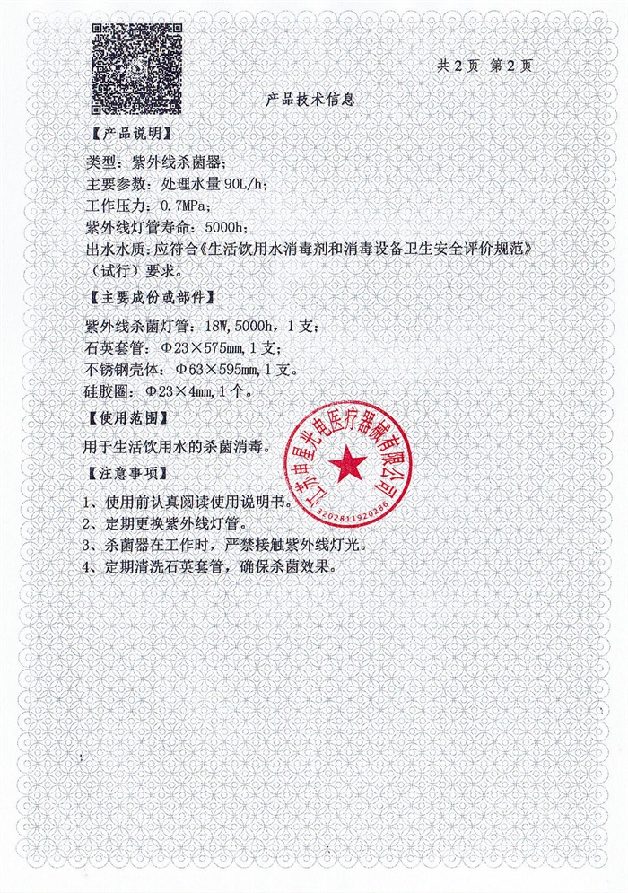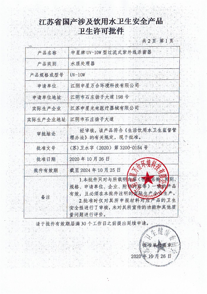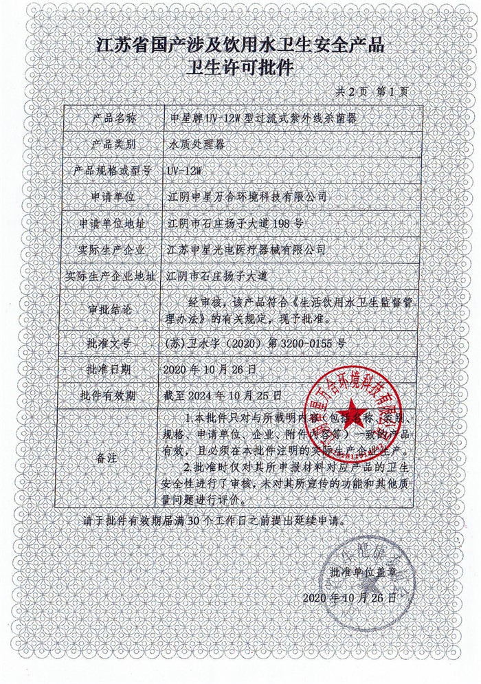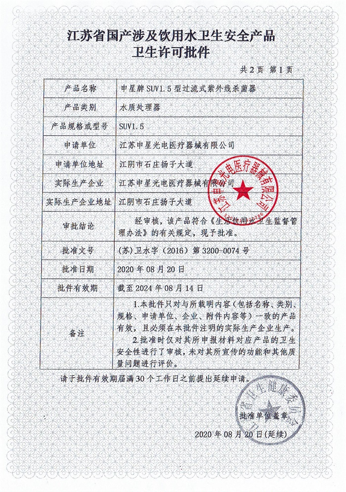 紫外线杀菌器涉水批件