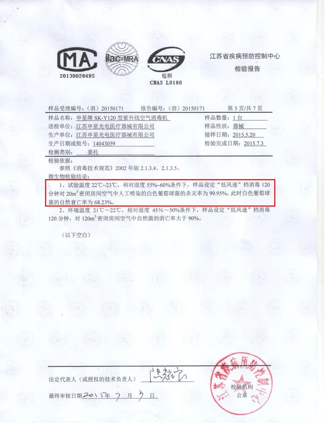 经检测,紫外线空气消毒器在对密闭房间的白色葡萄球菌的杀灭率为99.95%,对120m³的空气自然菌的消亡率大于90%。